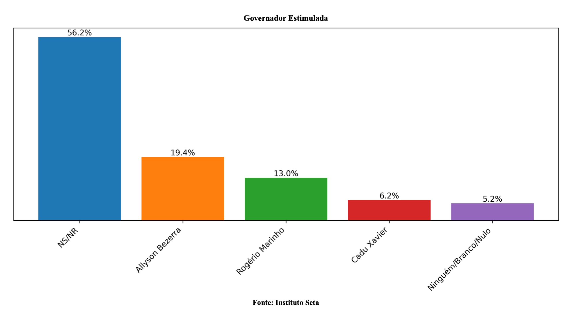 A pesquisa estimulada para o Governo do Estado em São Gonçalo do Amarante, a liderança também é do prefeito de Mossoró Allyson Bezerra. Ele aparece com 19,4%, seguido de Rogério Marinho com 13%.