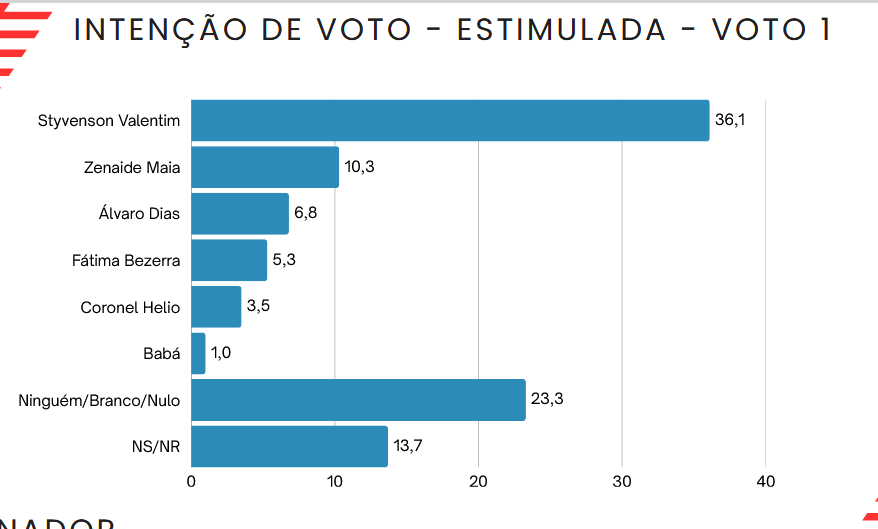 Pesquisa Seta para o Senado em São José de Mipibu mostra a liderança de Styvenson Valentim no primeiro voto. Ele aparece com 36,1% e Zenaide Maia com 10,3%. Em seguida Álvaro Dias com 6,8%.