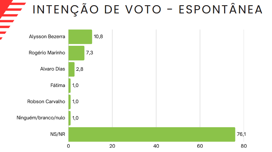 O prefeito de Mossoró lidera a pesquisa espontânea para o Governo em São José do Mipibu. Quem aferiu foi o Instituto Seta. Allyson aparece com 10,8% e Rogério Marinho com 7,3%. Já Álvaro Dias está com 2,8%.